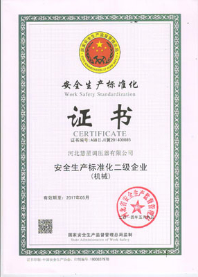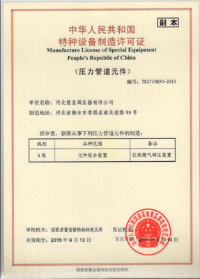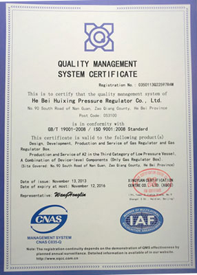 主導(dǎo)產(chǎn)品切斷式煤氣調(diào)壓器通過河北省經(jīng)濟(jì)委員會、省標(biāo)準(zhǔn)計量局認(rèn)可,獲得采用國際準(zhǔn)認(rèn)可證書